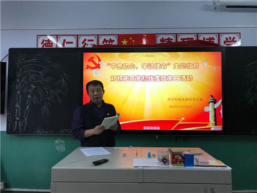 为深入贯彻落实习近平总书记重要指示精神,根据学院党委《关于在“不忘初心、牢记使命”主题教育中对照党章党规找差距的工作方案》要求,药学检验系教师党支部开展“对照党章党规找差距”主题党日活动。活动由支部书记卑占宇主持,支部全体党员、入党积极分子参加了本次活动。