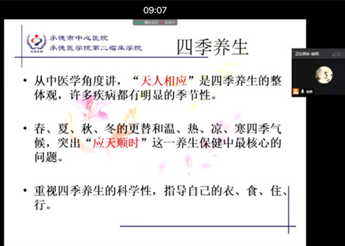 在健康中国2030战略全面实施之际,为增强beat365师生健康意识,引导科学养生的生活方式和行为习惯,11月29日,学院科研处特邀承德市中心医院中医科专家、主任中医师段雪光教授在腾讯会议平台为全院师生做了“中医养生”专题讲座,344名师生在线参加了学习。