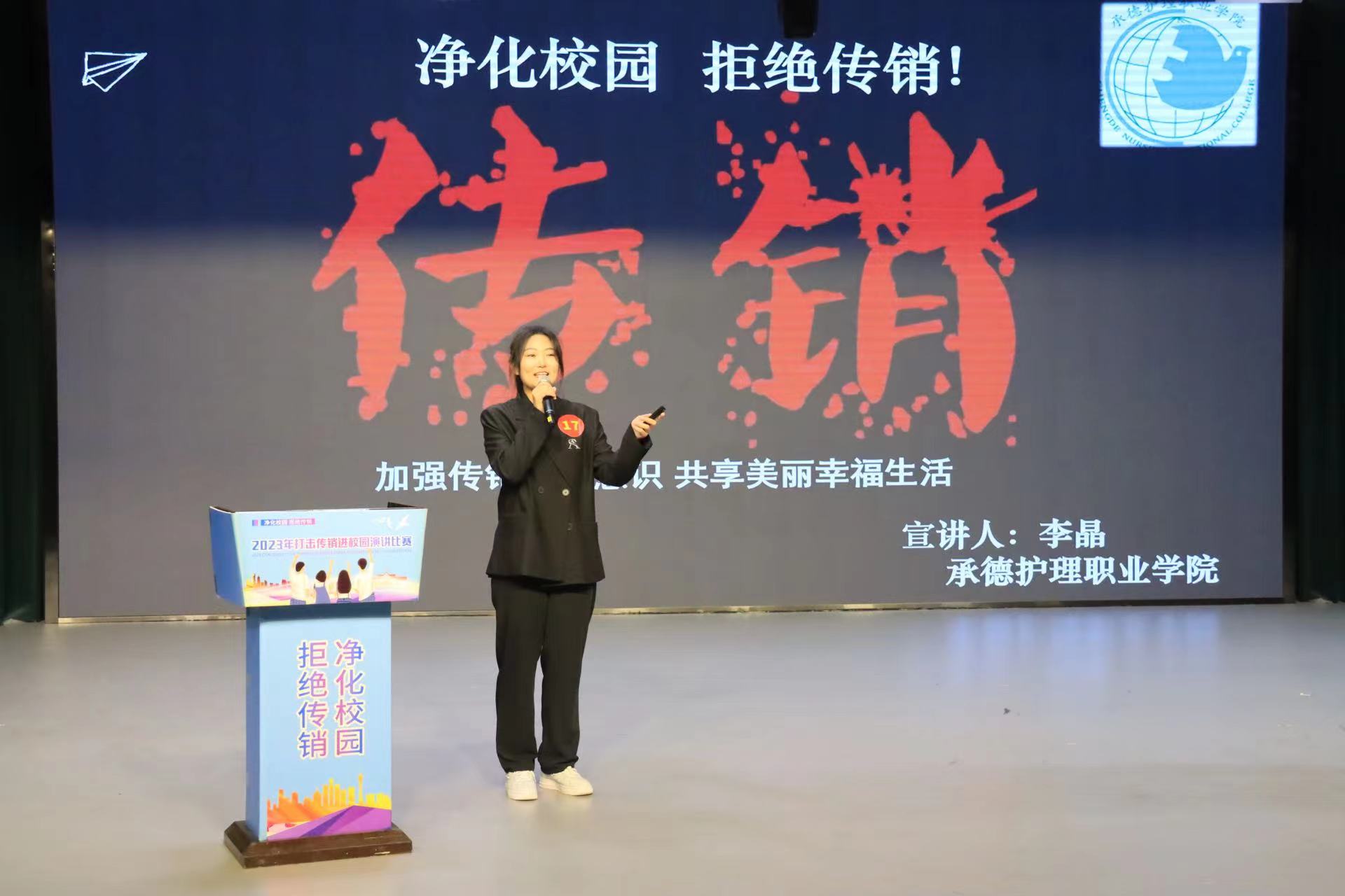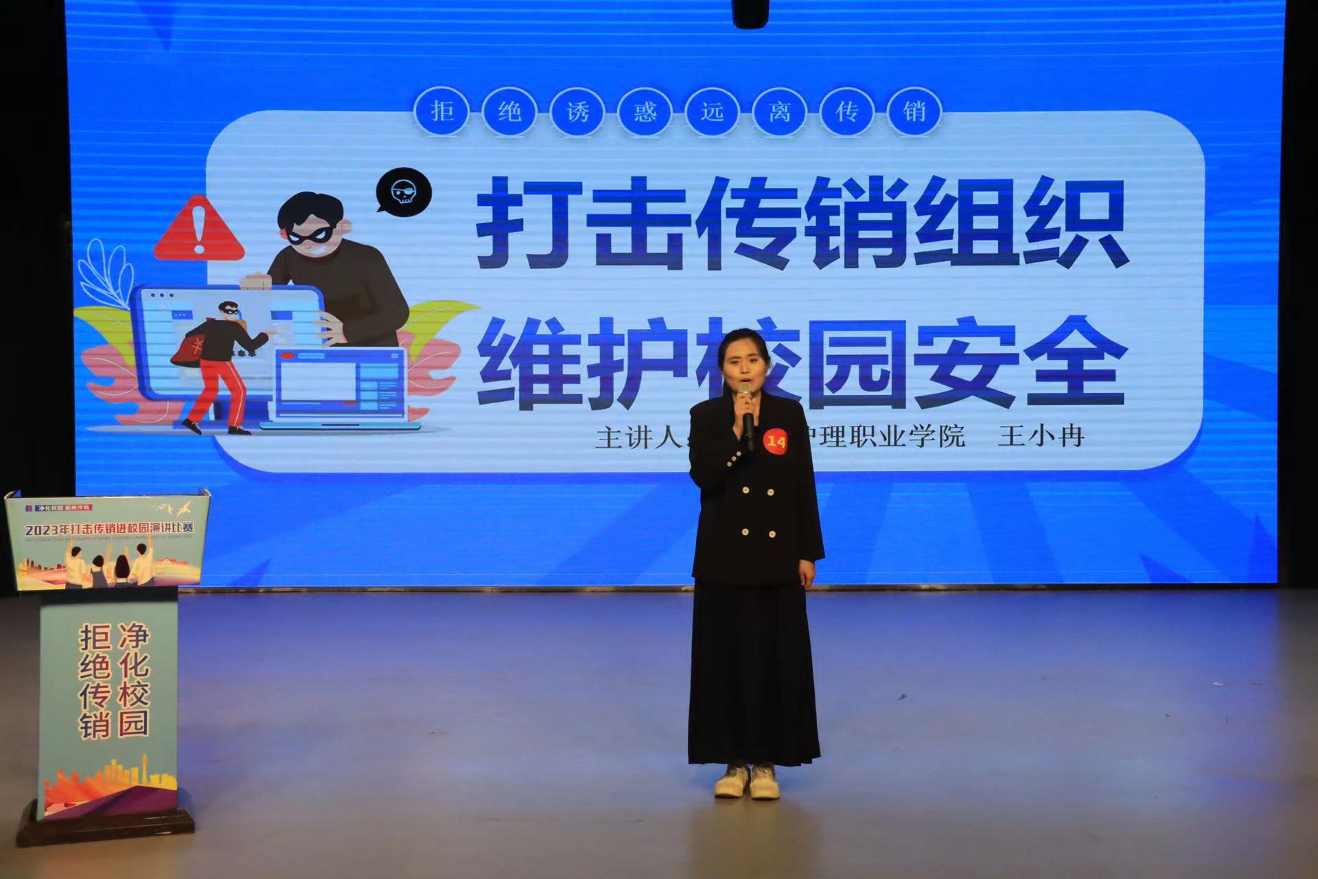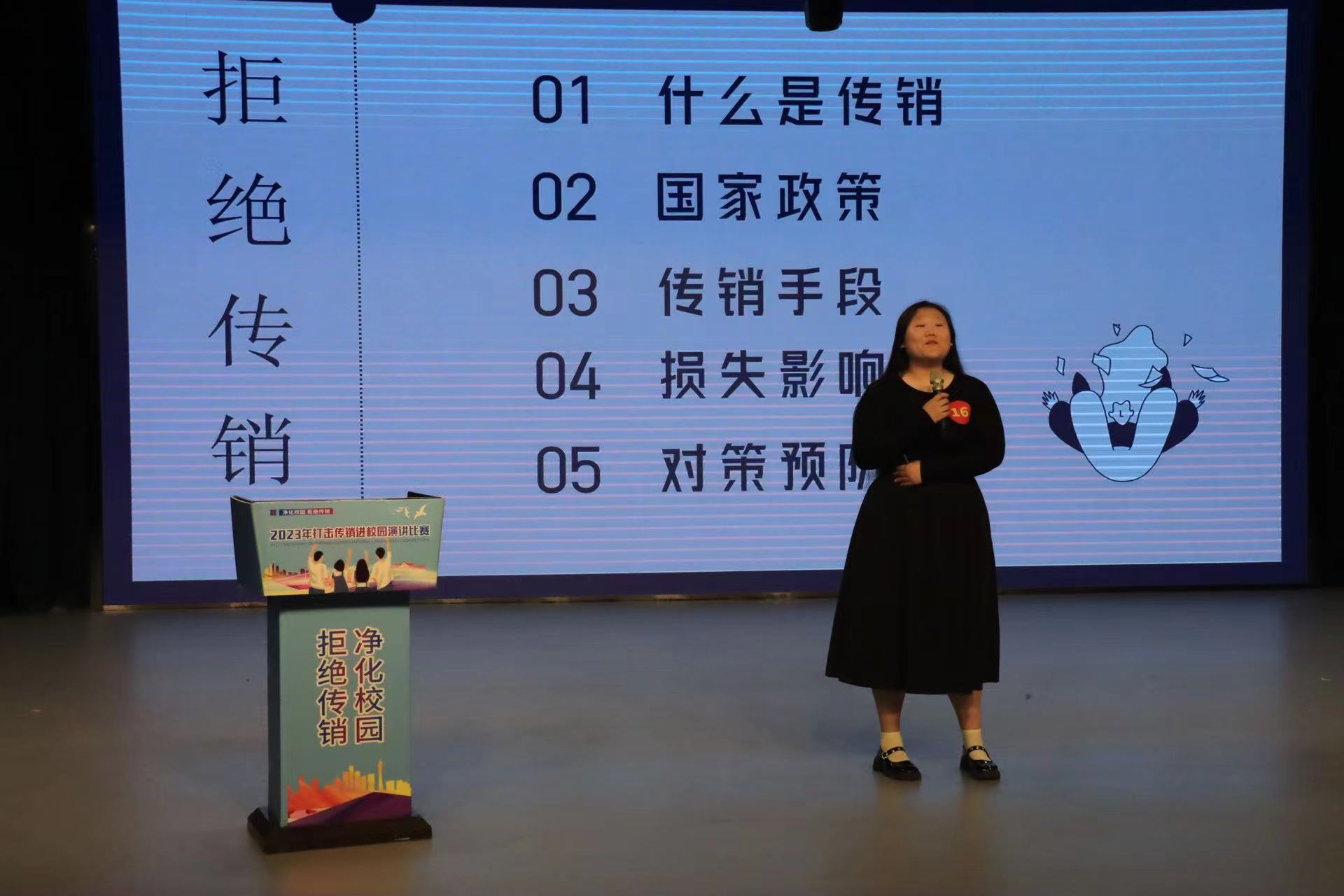 为保护广大师生生命财产安全,引导师生对传销违法犯罪活动不参与、能识别、敢揭发,有效遏制传销等违法犯罪活动蔓延。市打击传销工作联席会议办公室、市市场监督管理局、市公安局)联合开展 2023年打击传销进校园宣传活动暨“净化校园 拒绝传销”主题演讲比赛。