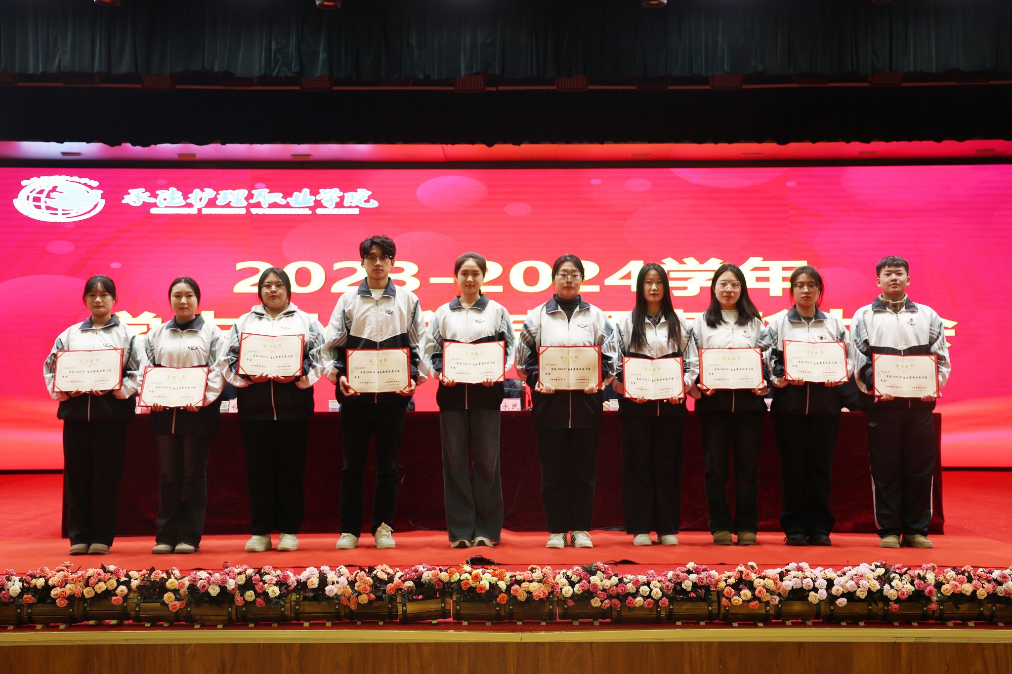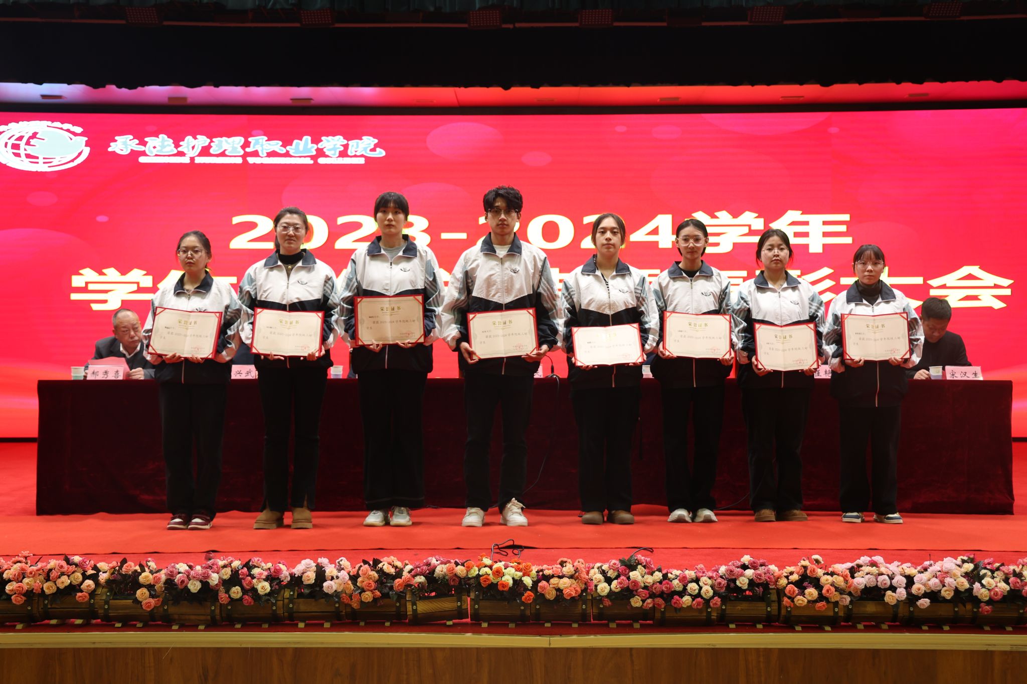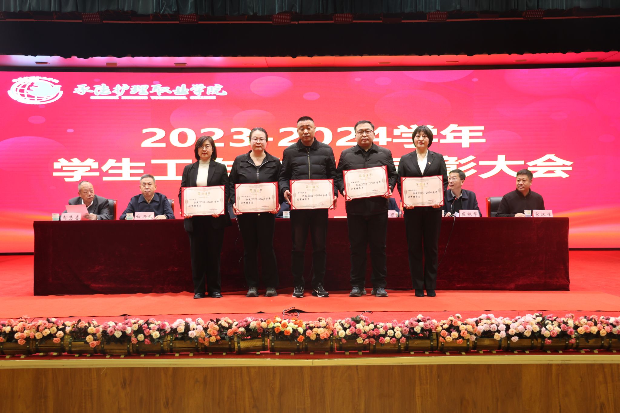 会上,学生工作部部长韩国新做了《2024年学生工作报告》,赵树才宣读了《beat365英国官方网站关于表彰2023-2024学年学生工作先进个人和集体的决定》。本次大会对石聪聪等512名三好学生,邢杰等374名优秀学生干部,2023级临床医学1班等32个先进班集体,2023级口腔医学1班等10个集体单项进步奖,田志红等5名优秀辅导员(班主任),肖橙等11名国防教育和征兵工作先进个人,顾英国等9名就业工作先进个人,高乐等18名“国家奖学金”获得者,李鑫等193名“国家励志奖学金”获得者,魏梦媛等68名一等奖学金获得者,王一博等392名二等奖学金获得者,叶迎雪等288名三等奖学金获得者,刘明娜等40名文明标兵奖学金获得者,王一畅等92名学业进步奖学金获得者,郭文昕等86名社会实践优秀奖学金获得者,王一帆等40名文体活动优秀奖学金获得者,何嘉希等10名“颈复康药业英才奖学金”获得者予以表彰奖励。