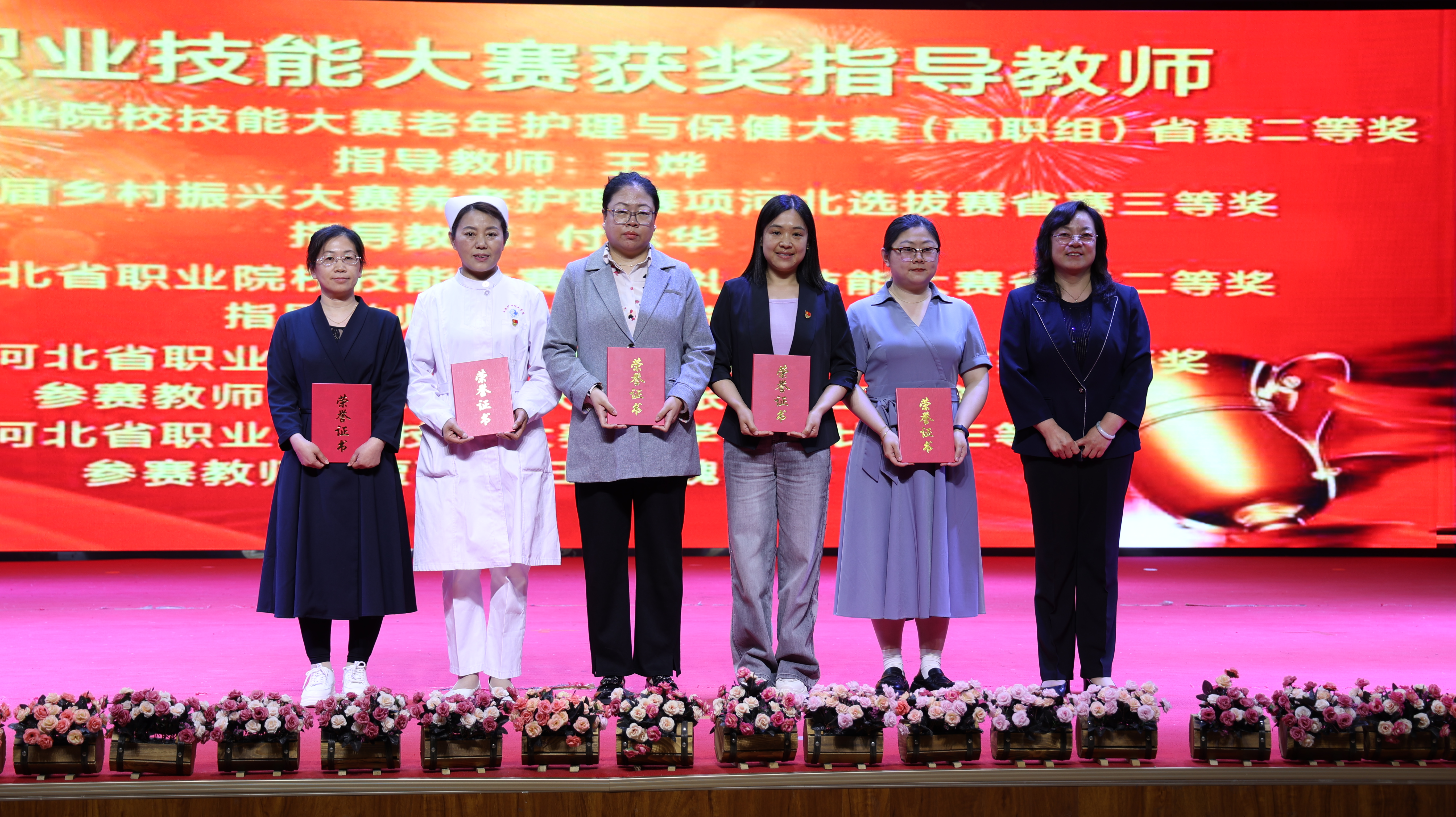 会上,对过去一年来代表学校参加的国家级、省市级护理技能大赛、养老护理技能大赛、老年护理与保健技能大赛、健康照护技能大赛、健康养老照护技能大赛以及教学能力大赛中取得优秀成绩的学生以及老师进行了表彰。