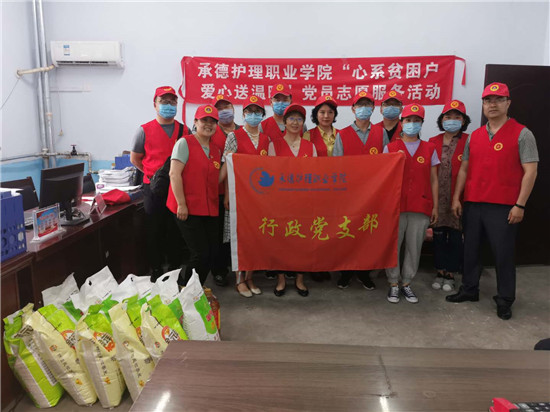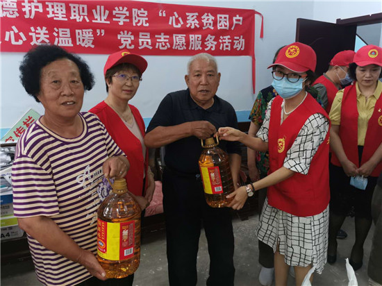 为持续深入推进全国文明城市创建工作,7月3日下午15点,beat365英国官方网站行政党支部和国际护士培训中心党支部教师党员,来到结对帮建社区——下二道河子社区开展“心系贫困户 爱心送温暖”党员志愿服务活动,用全体党员捐助的爱心款为社区贫困党员购买了米、面、油等慰问品。