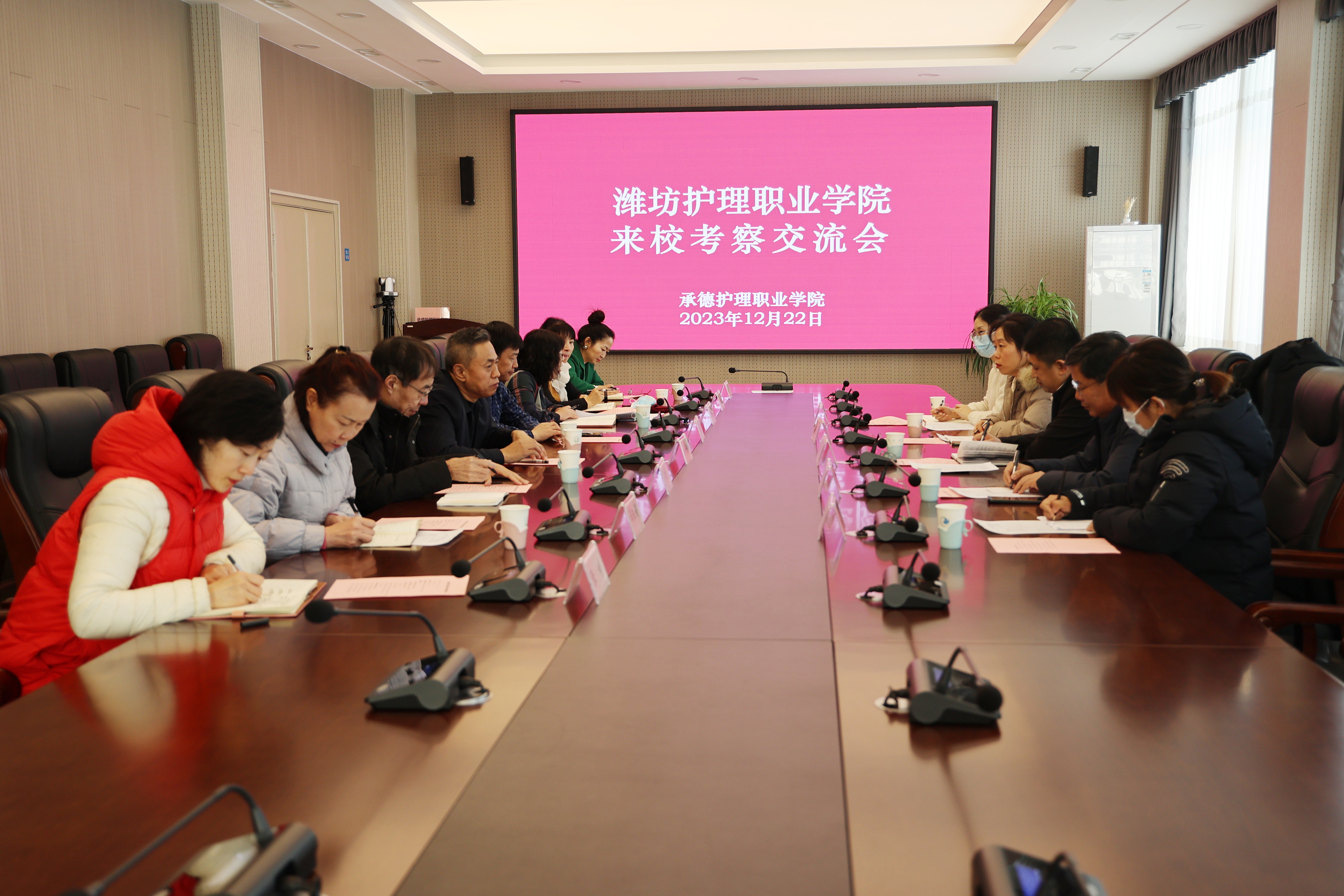 12月22日上午,潍坊护理职业学院党委委员苗光盛一行5人来校就国际交流办学及涉外护理专业建设进行考察交流,并召开座谈会,党政办公室、教务处、继续教育与国际交流中心、涉外护理系、护理系主要负责同志以及教师代表参加会议,会议由副校长白兴武主持。