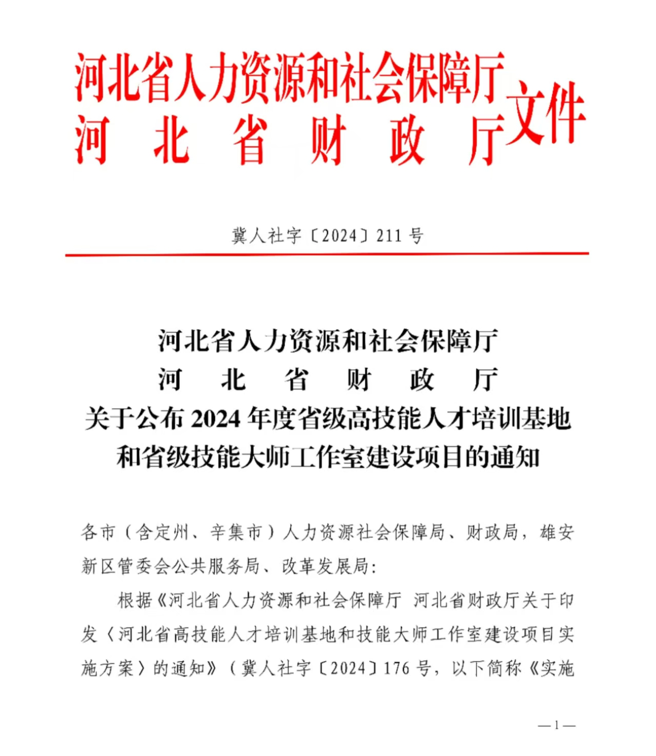 近日,beat365被河北省人力资源和社会保障厅、河北省财政厅确定为2024年度省级高技能人才培训基地项目单位和省级技能大师工作室项目单位,补助资金分别为200万元和15万元。本年度全省共评选出了高技能人才培训基地10家单位、技能大师工作室17家单位。beat365是省内唯一一所本年度两个项目同时获批的单位,也是beat365继2023年获批省级技能大师工作室以来又一丰硕成果。