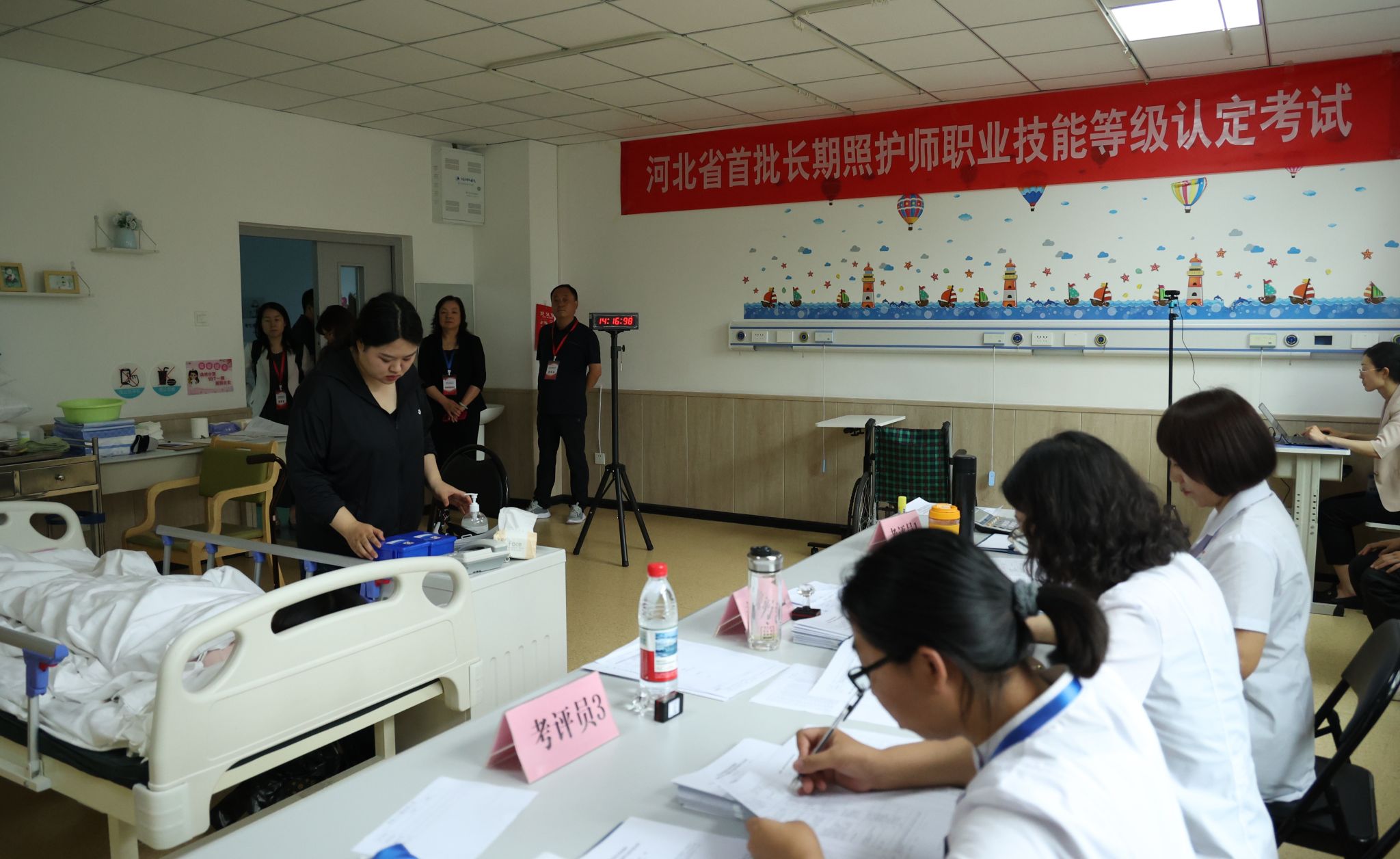 6月14日,河北省首批长期照护师(五级/初级)职业技能等级认定考试在学校举行,88名学员参加考试。此次考试采用理论与实操双项测评,高规格、严要求,实现全程监控。