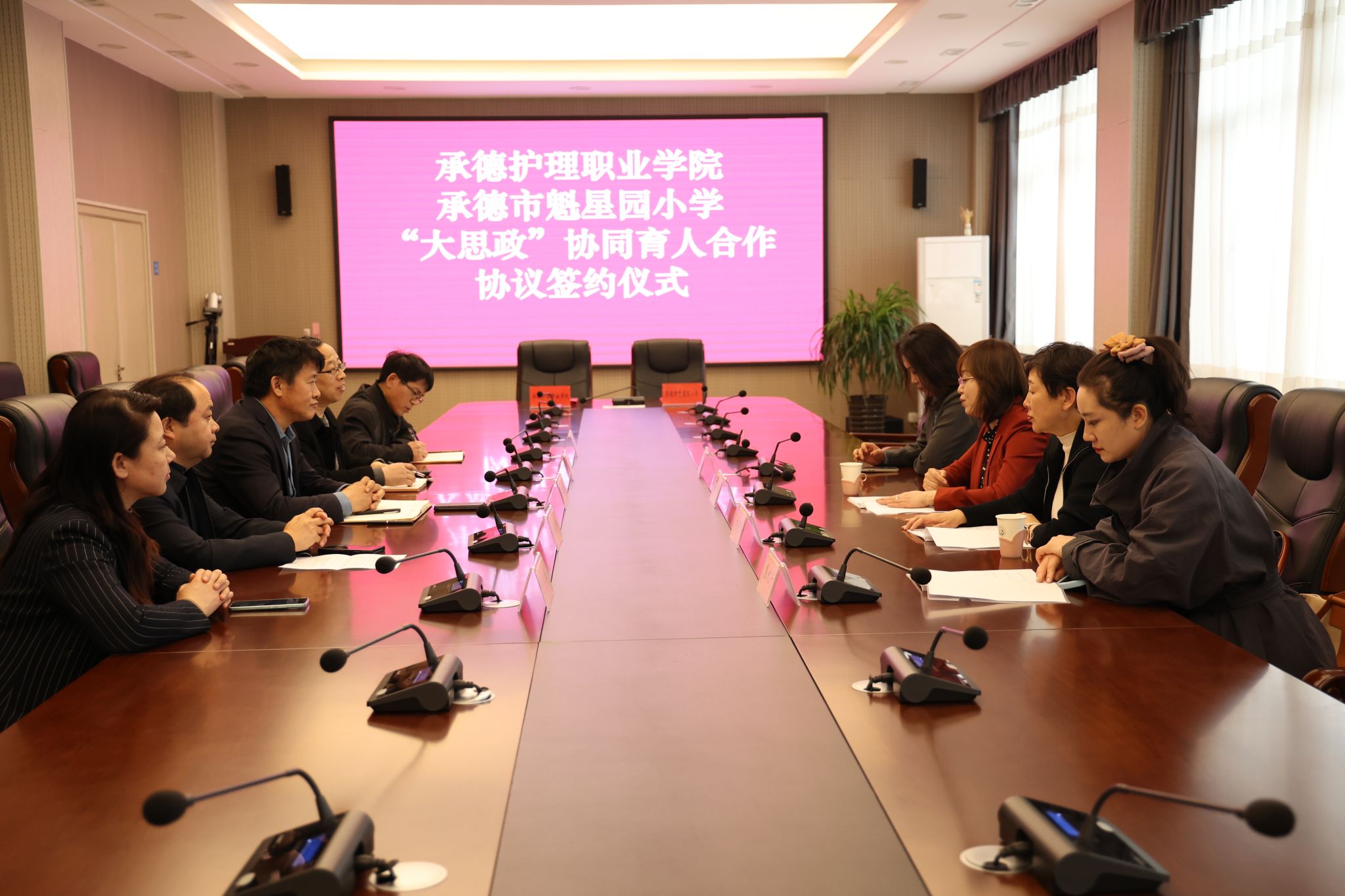 4月1日下午,beat365与承德市魁星园小学“大思政”协同育人合作协议签约仪式在601会议室举行。副院长徐国辉,思政部、基础部班子成员及部分思政课教师代表,魁星园小学校长崔莉利、副校长刘晓峰及教师代表参加了活动。活动由思政部主任徐鹏辉主持。