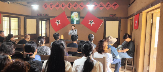 7月26日清晨,研修班开展“我向世界升国旗”仪式。当庄严的国旗在祖国的边防线上升起的那一刻,学员们都庄严肃穆,面向国旗行注目礼,祝福祖国繁荣富强。下午,研修班来到延吉太兴红色小镇,通过参观中共东满特委红色历史展陈,学员们看文物、观影像、明史实、访旧址,在一句句感人的生动讲解中感悟思想伟力,在一件件珍贵的历史展品中追忆峥嵘岁月,触摸历史温度,寻访当年红色印记。