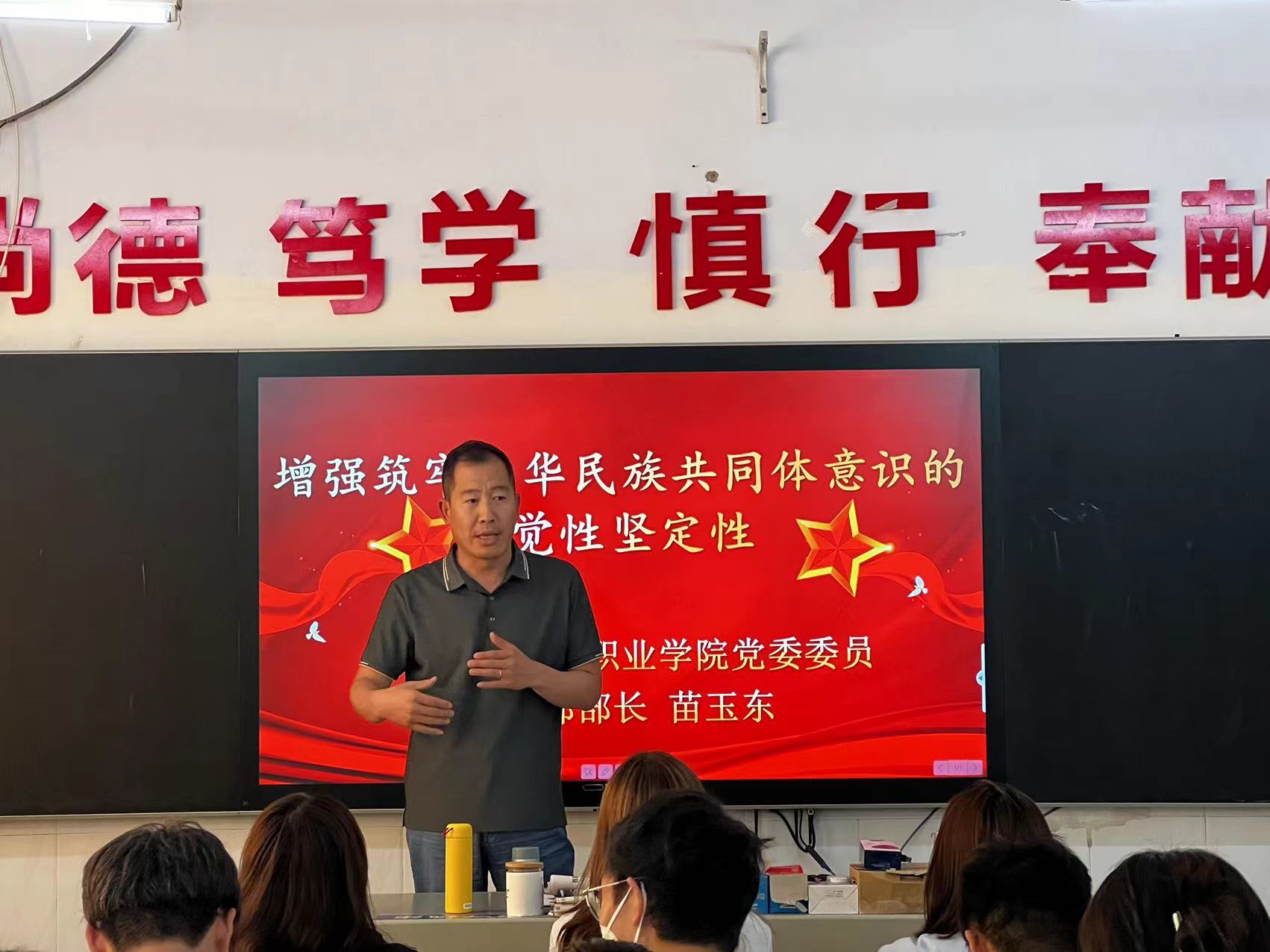 6月13日下午,党委宣传部部长苗玉东走进2022级中医康复技术1班,以“增强筑牢中华民族共同体意识的自觉性坚定性”为题讲授了一堂生动的思政课。