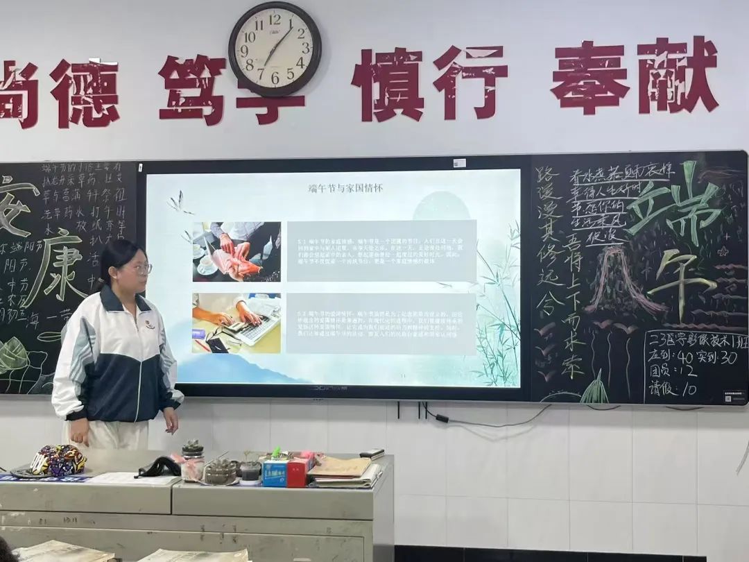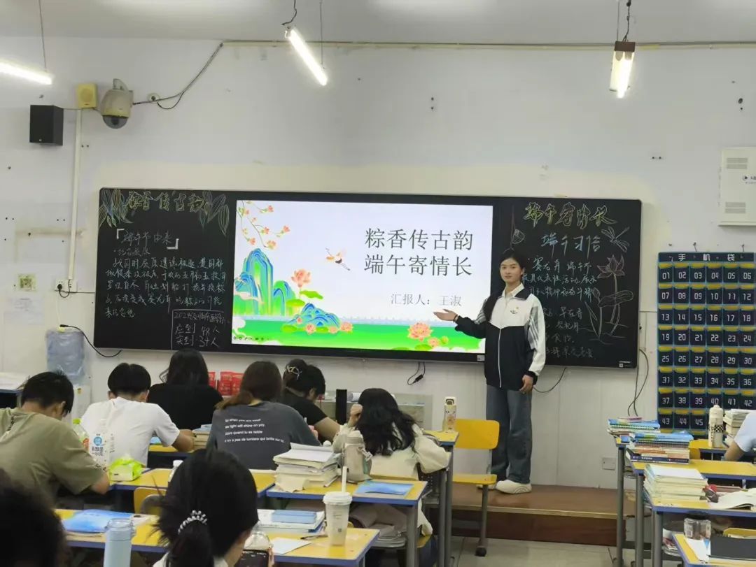 班会中,有的班级通过视频介绍与同学们共同探讨,有的围绕屈原的文化背景展开陈述,同学们深入了解了端午节的起源、传说以及吃粽子、赛龙舟、挂艾草等传统习俗背后的文化内涵。在整个活动中,大家积极思考,分享自己对端午文化乃至整个中华文化的深刻理解与感悟,传播着中华文化不仅是民族的,更是整个世界的,天下因优秀文化乃一家。