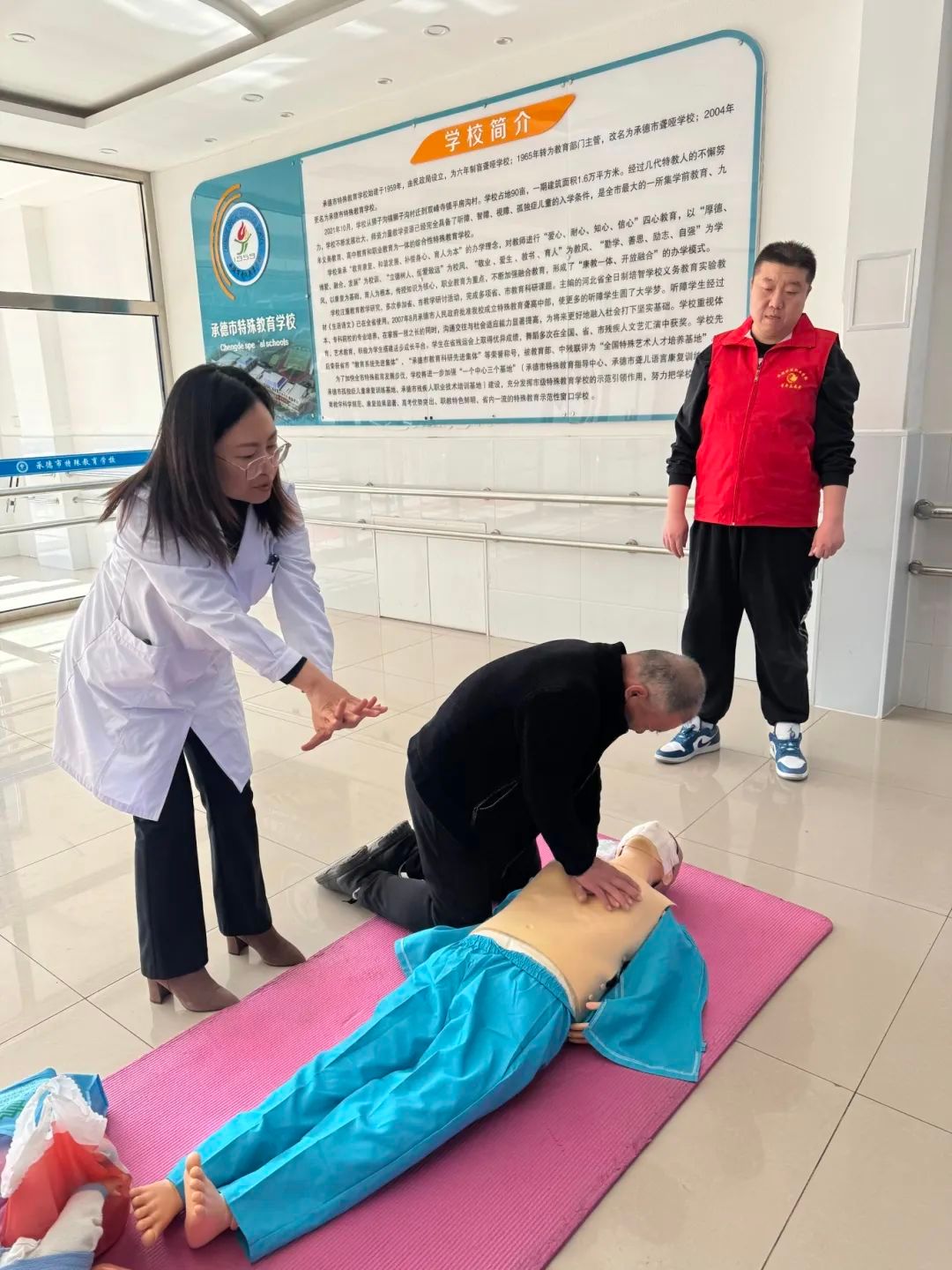 为了进一步提升特殊教育学校教师的急救能力,外科教研室主任韩笑还特别为教师们讲解了心肺复苏技能,并鼓励教师们进行实际操作示范。这一环节不仅增强了教师们的急救意识,也为他们在未来可能遇到的紧急情况中提供了有力的支持。