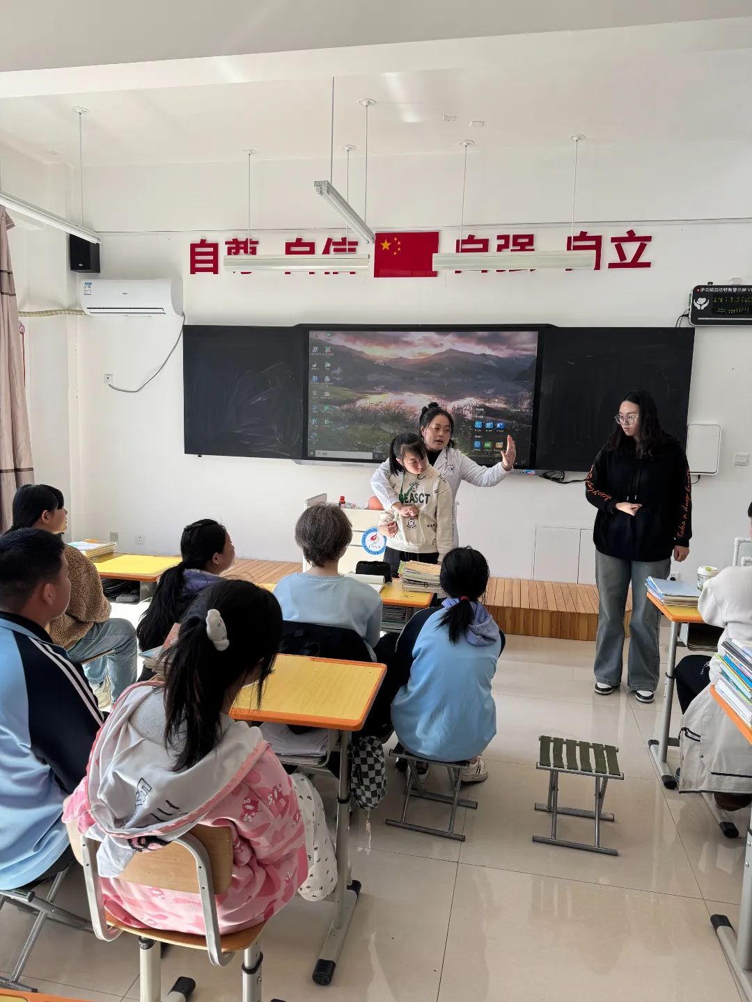 参与此次志愿服务的8名教师分别来自护理、妇科、内科和外科专业,他们为特殊教育学校的4个启智班和4个启音班的100余名同学带来了生动而实用的健康课程。课程中,教师们详细讲解了海姆立克急救法,这一急救技能在紧急情况下能够挽救生命;同时,还教授了简单的外伤处理方法,以及家长和学生如何帮助孩子进行简单的包扎。此外,教师们还围绕生理卫生知识和身体健康方面进行了深入浅出的教育,帮助孩子们更好地了解自己的身体,学会保护自己。
