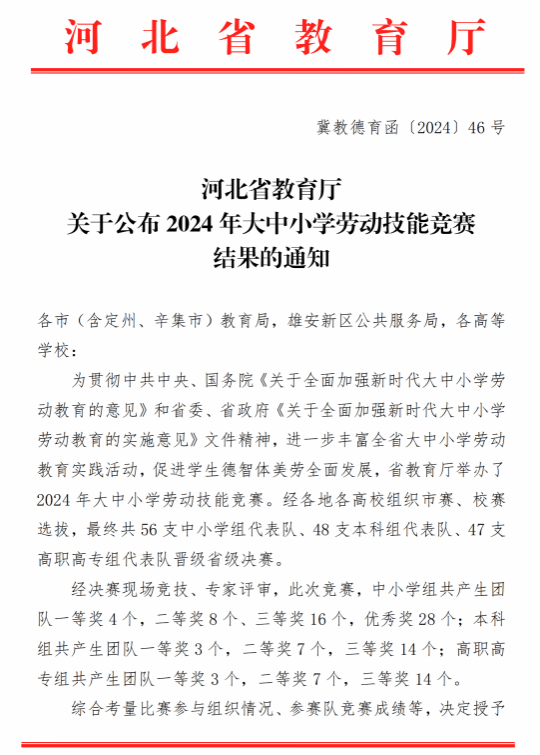 喜报!beat365在“2024年河北省大中小学劳动技能竞赛”中喜获佳绩