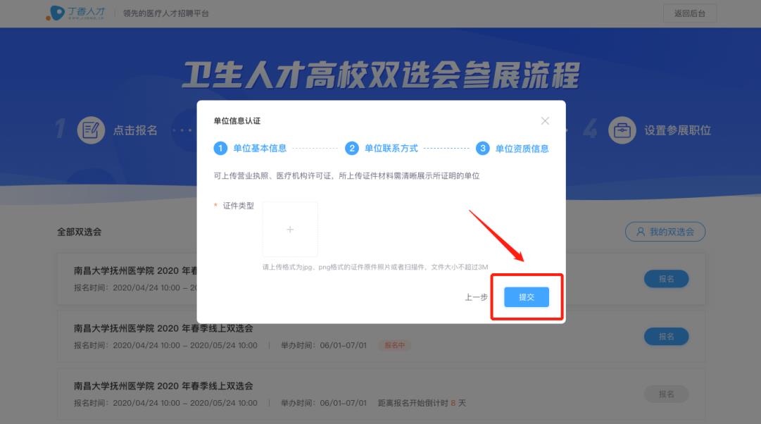 3.点击企业管理后台左侧“高校双选会”,选择需要报名的高校招聘会场次进行报名(新注册用户自动进入招聘会报名页面)