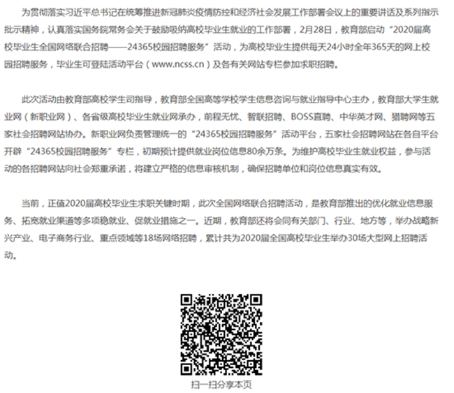 请广大2020届毕业生踊跃参加,积极投递简历,以助完成学业,实现人生价值!
